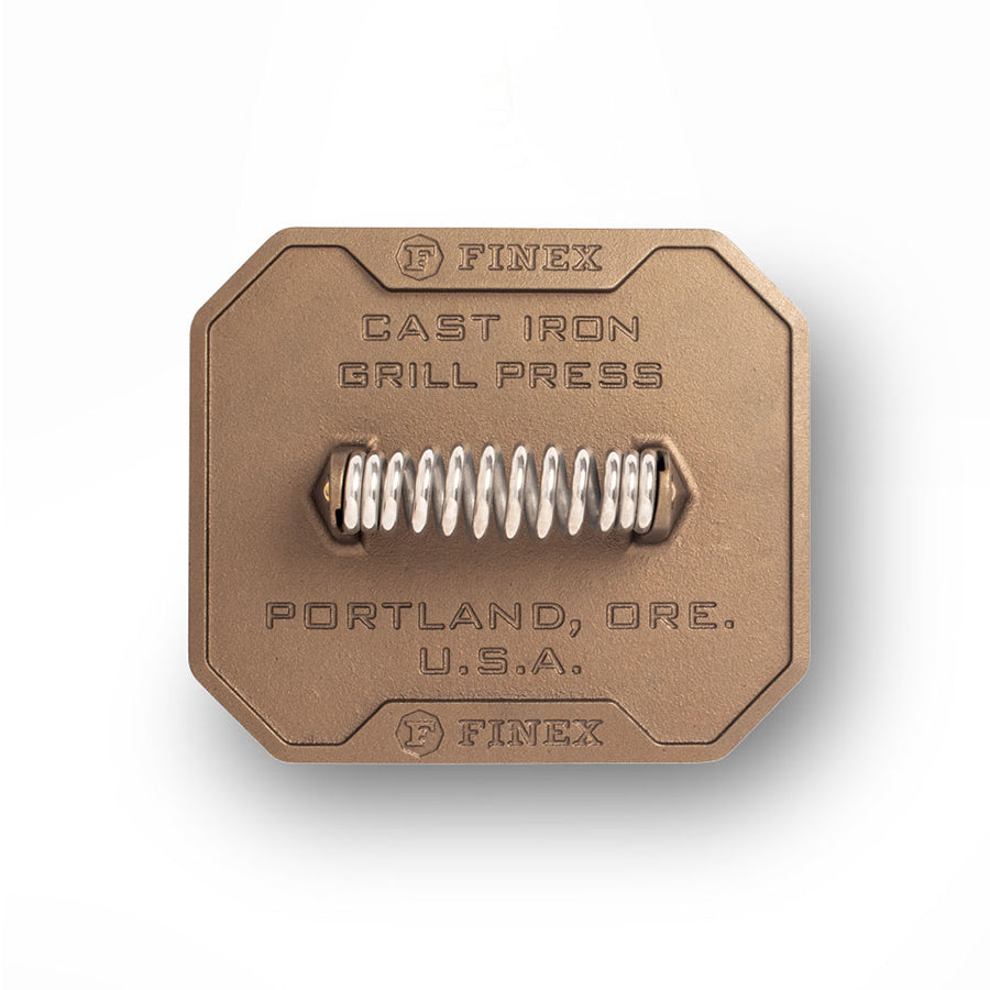 Over four pounds of heavy-gauge, pre-seasoned cast iron topped with our stainless steel spring handle. Complete with either our machined smooth cooking surface or our famed ¼” tall grill ribs, the FINEX Flat and Grill Press delivers serious weight and premium cooking performance, whether you’re using them over any stovetop, the grill or on an open flame. The Flat & Grill Press are compatible with the following FINEX products:
